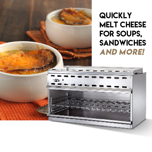 Complete any signature entrée with our selection of Natural Gas Infrared Cheese Melters! These units are built to accommodate your commercial kitchen in three sizes; 24-inch, 36-inch, and 48-inch. Your next go-to tool for melting cheese quickly; ideal for delicious grilled cheese, pizza toppings, soups, and more! Key Features Include Natural gas infrared burners are […]