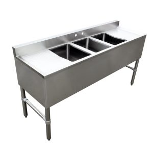 3 Compartment Underbar Sink with 19″ Left and Right Drainboards