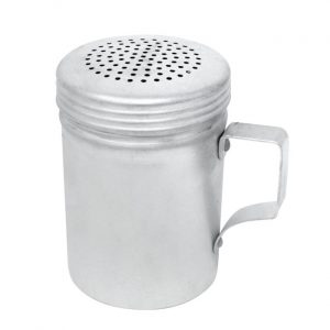 10 oz Polycarbonate Dredge with Yellow Lid & 4 mm Hole for Coarsely Ground Products NSF