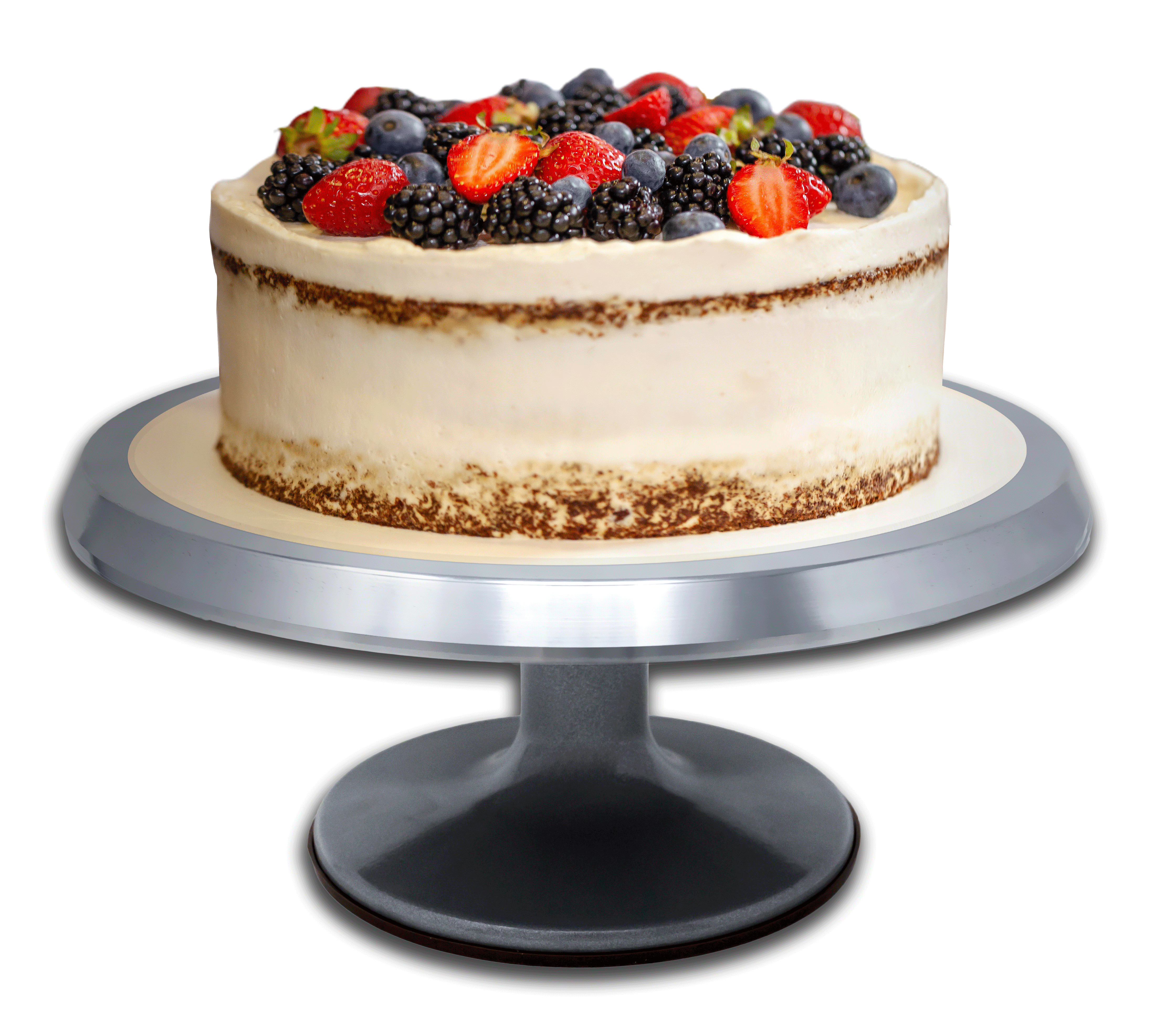 - 12″ spacious surface with roll-off edge make it easy to mount and dismount cakes