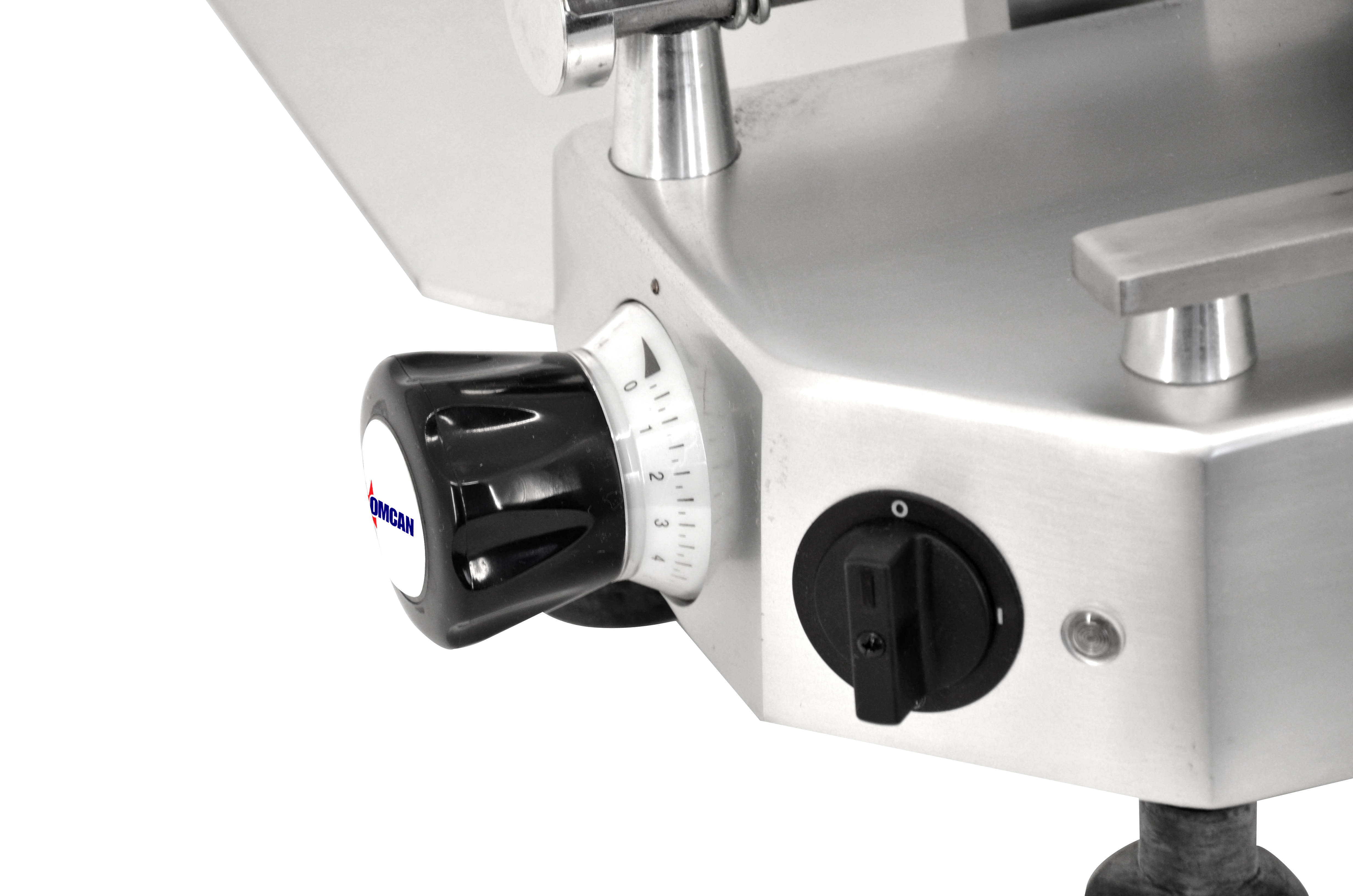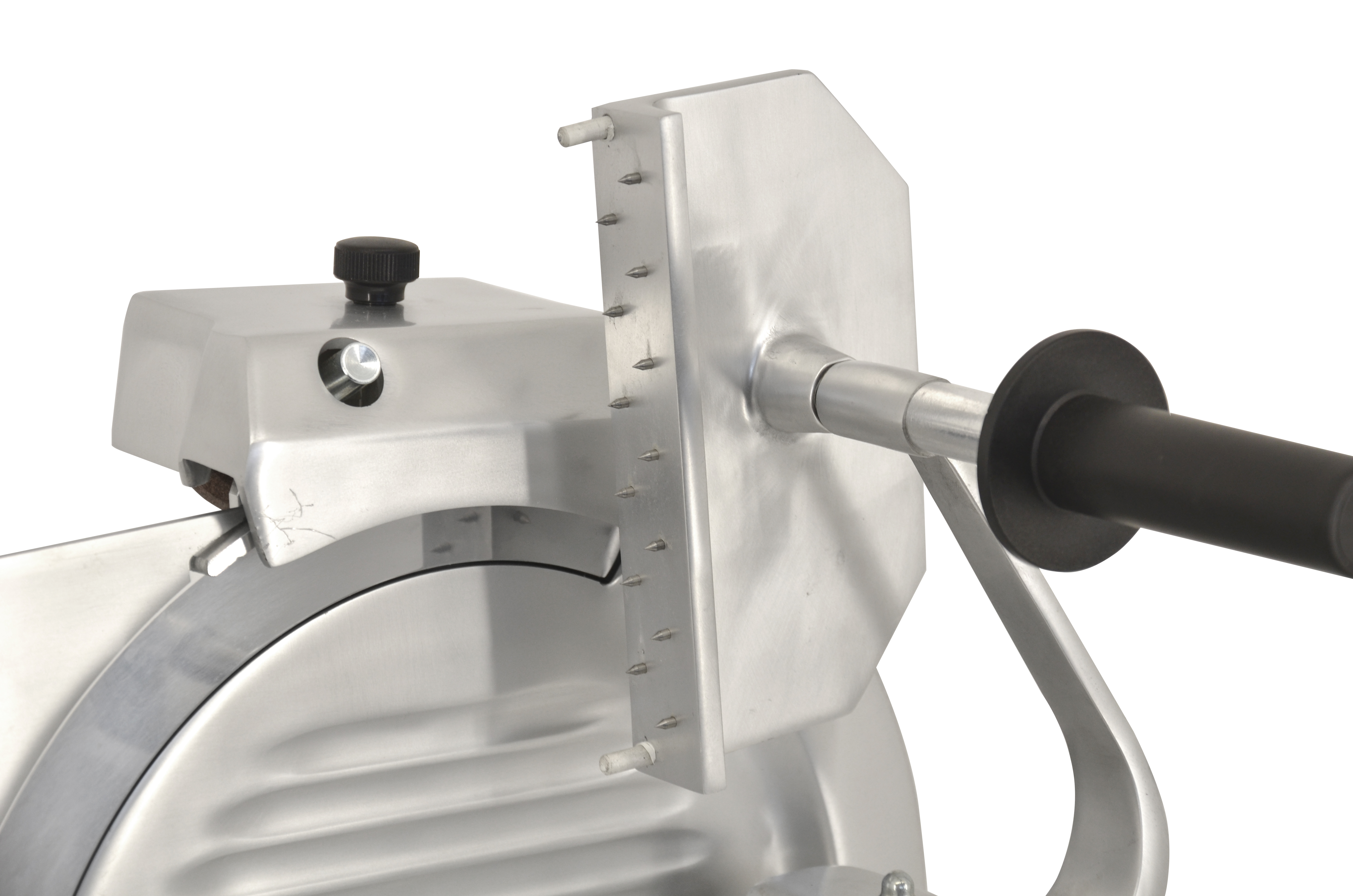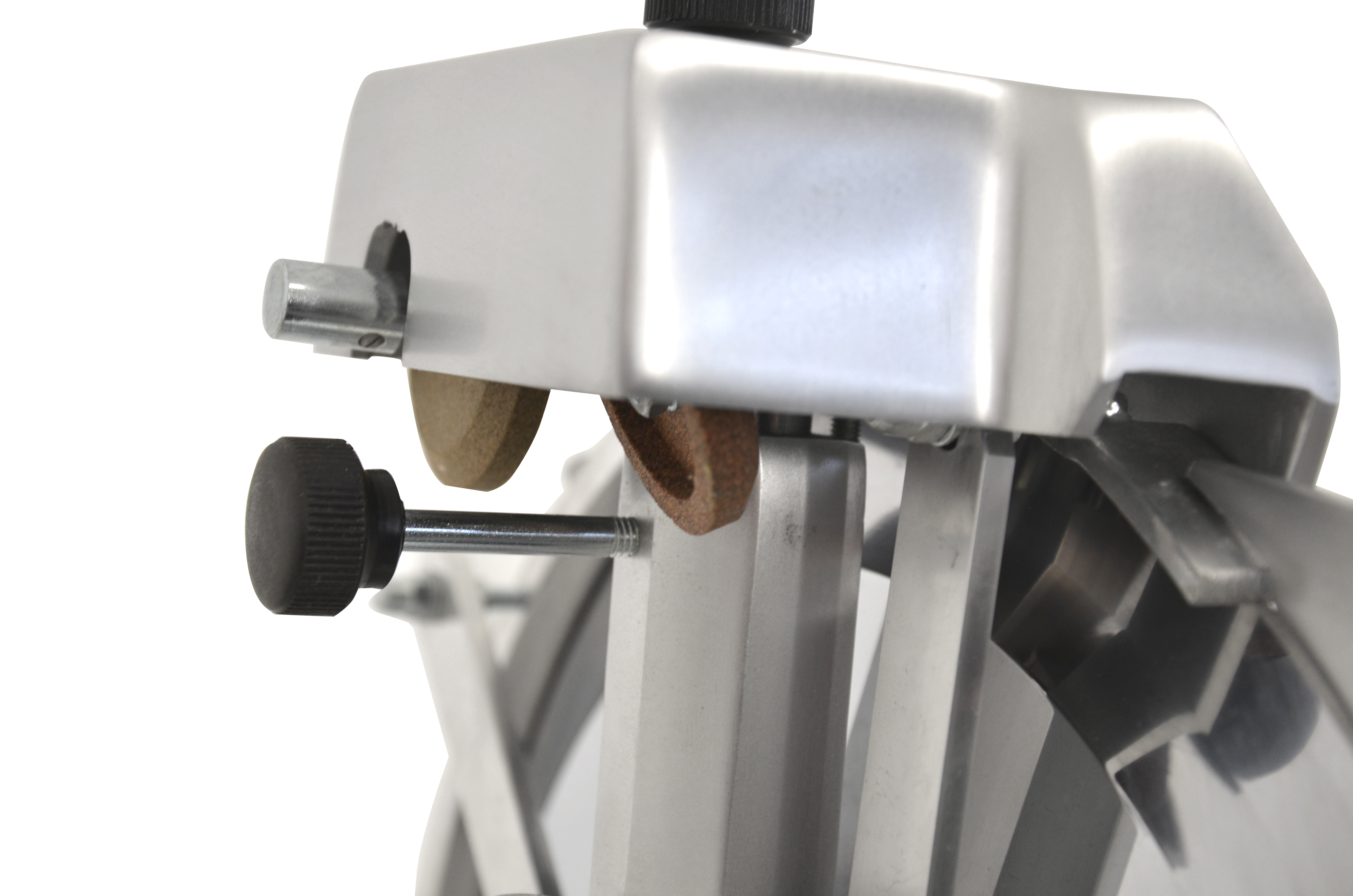These slicers are made of anodized aluminium alloy which makes it easy to clean and meet the most demanding sanitation requirements. The precise decimal thickness regulator ranges between 0 and 16mm. They are equipped with a built-in blade sharpener for effective cutting and the plate mounted on the ball bearings creates an exceptionally smooth operation. Ideal for thin prosciutto slicing. Shipped on Pallet