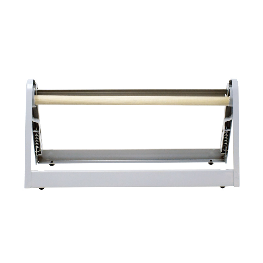 Roll changing is easy with dowel holders and knife arms that lock into open position. Mounts permanently on a wall, under a counter or on a countertop using the supplied rubber feet (mounting hardware not included). Holds up to 9″ diameter roll