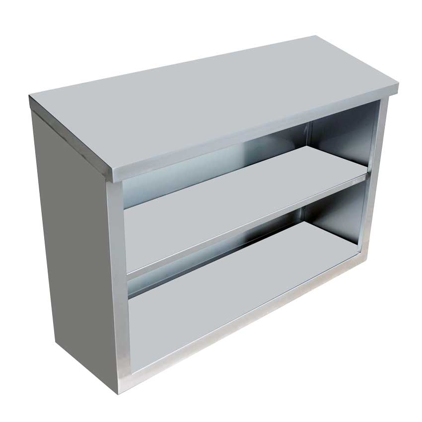 Omcan'sĀ stainless steel open wall cabinets provide easy access to your kitchen tools, janitorial supplies, or other necessities / store stock. Features a slope top shelf for easy clean and reduces dust buildup.