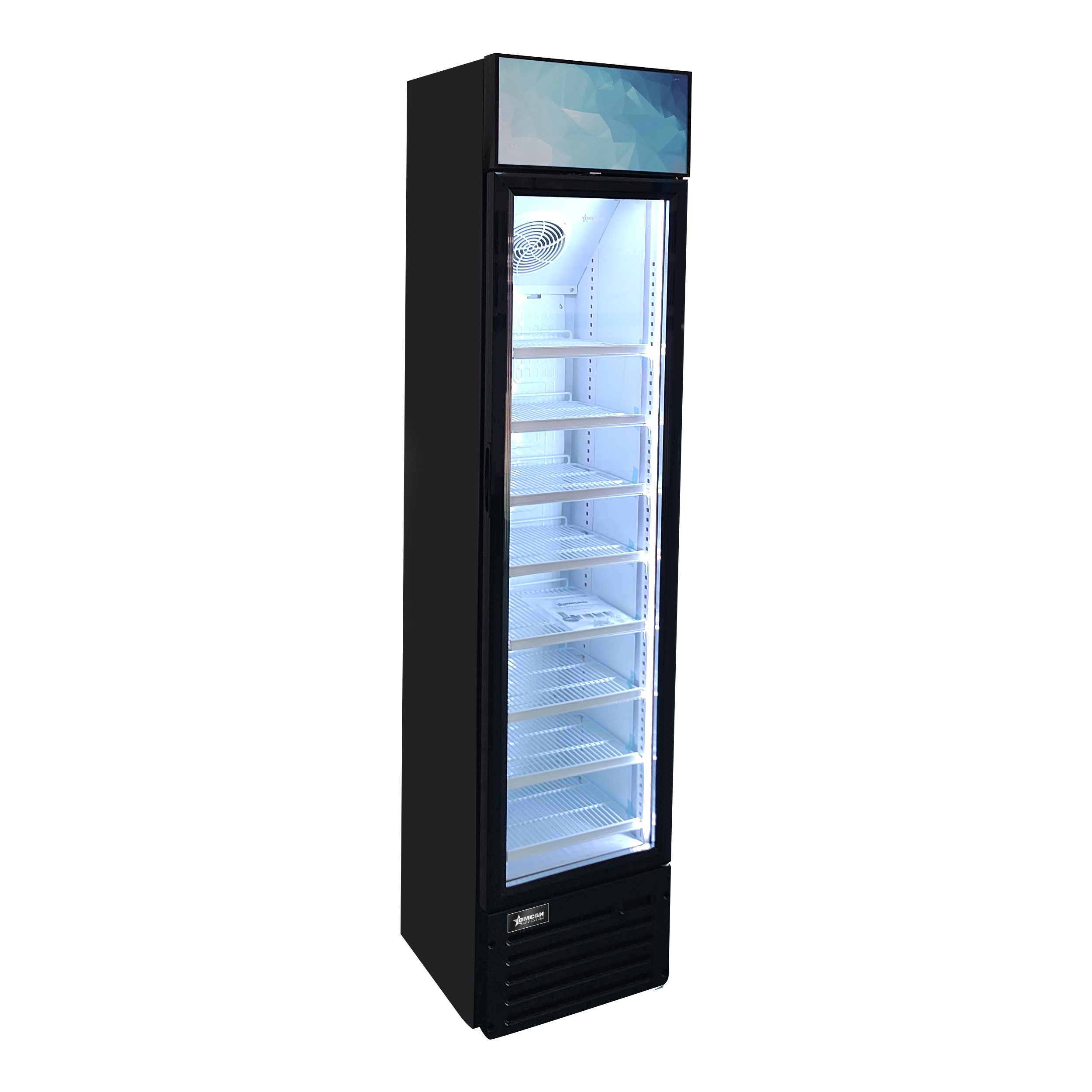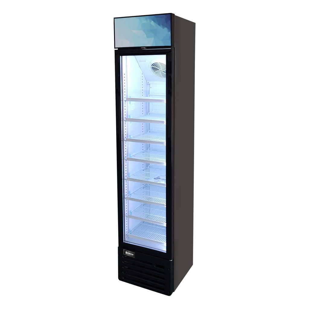 Spacious glass door refrigerator crafted with enduring quality. Sleek design featuring innovative technology, high-efficiency components, and the most attractive product display in its category. Slim size refrigerated display glass door merchandiser, ideal for promotions or impulse new products. Designed for places with limited space.