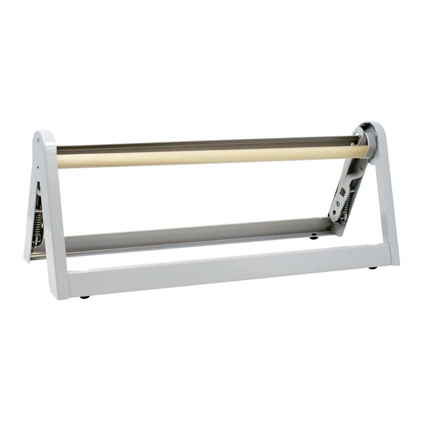 Roll changing is easy with dowel holders and knife arms that lock into open position. Mounts permanently on a wall, under a counter or on a countertop using the supplied rubber feet (mounting hardware not included). Holds up to 9″ diameter roll