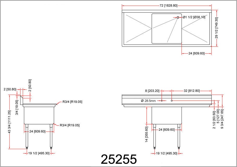 18-Gauge Stainless Steel Comes with drain guards Drain size: 1.8″ for corner drain Shipped with 16-gauge, galvanized legs removed