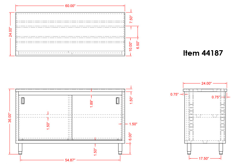 18-gauge 430 stainless steel back, side, bottom and intermediate shelf
