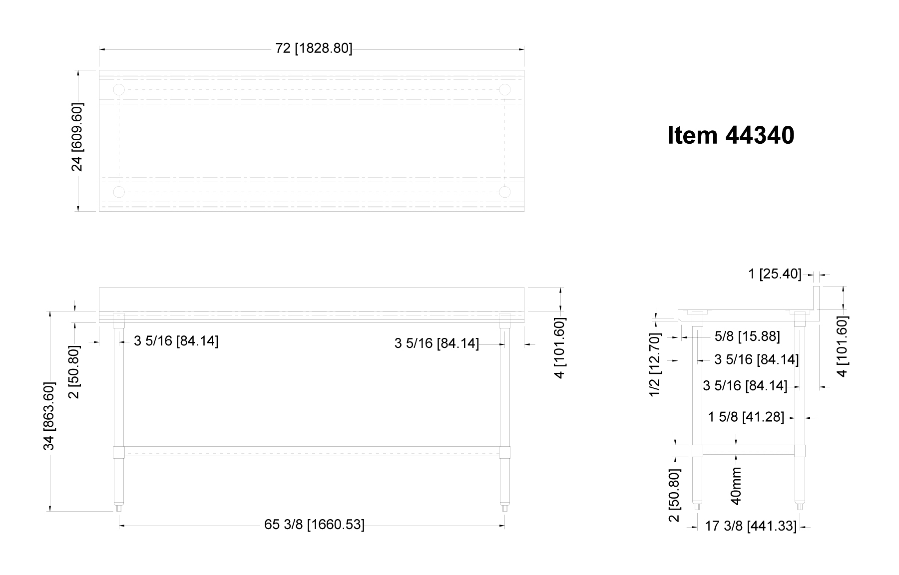 • 20Gauge. 430 Stainless steel undershelf and hat channel; stainless steel leg and socket; stainless steel bullet feet