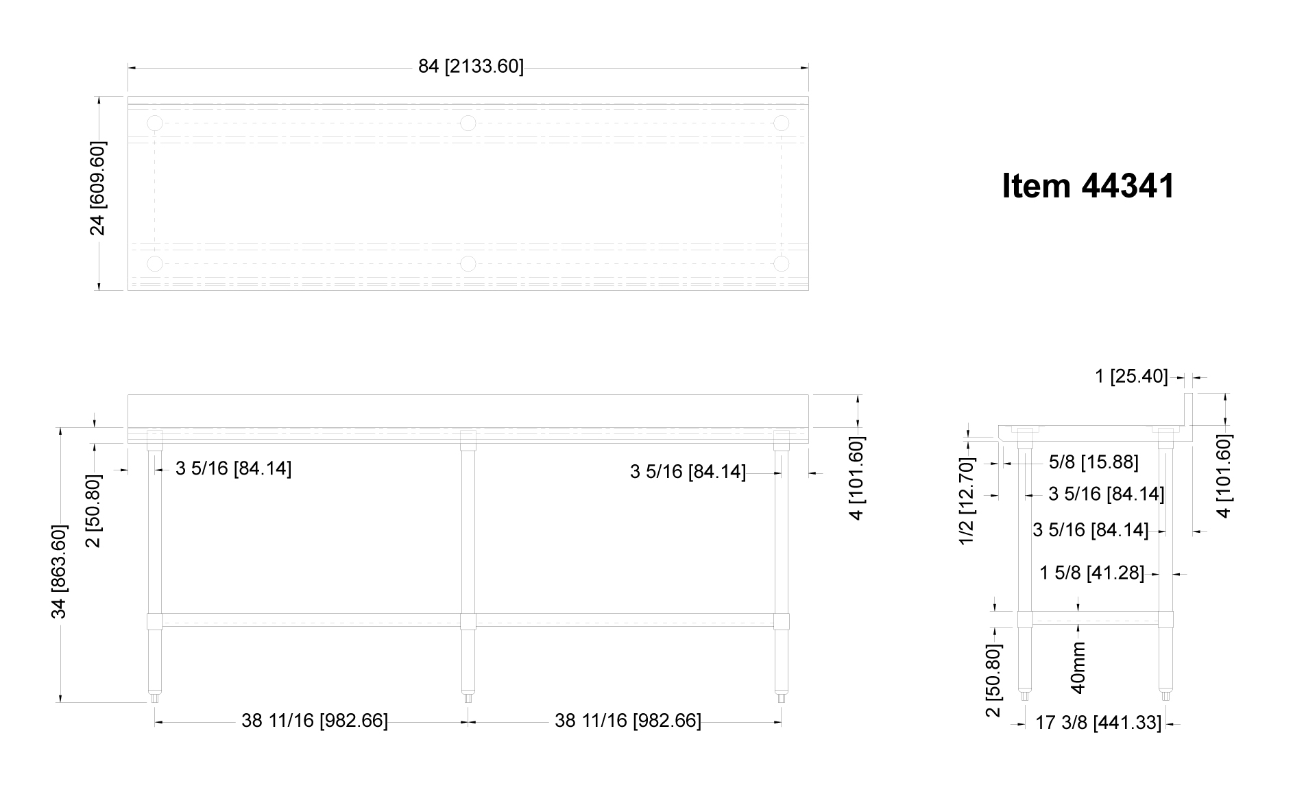 • 20Gauge. 430 Stainless steel undershelf and hat channel; stainless steel leg and socket; stainless steel bullet feet