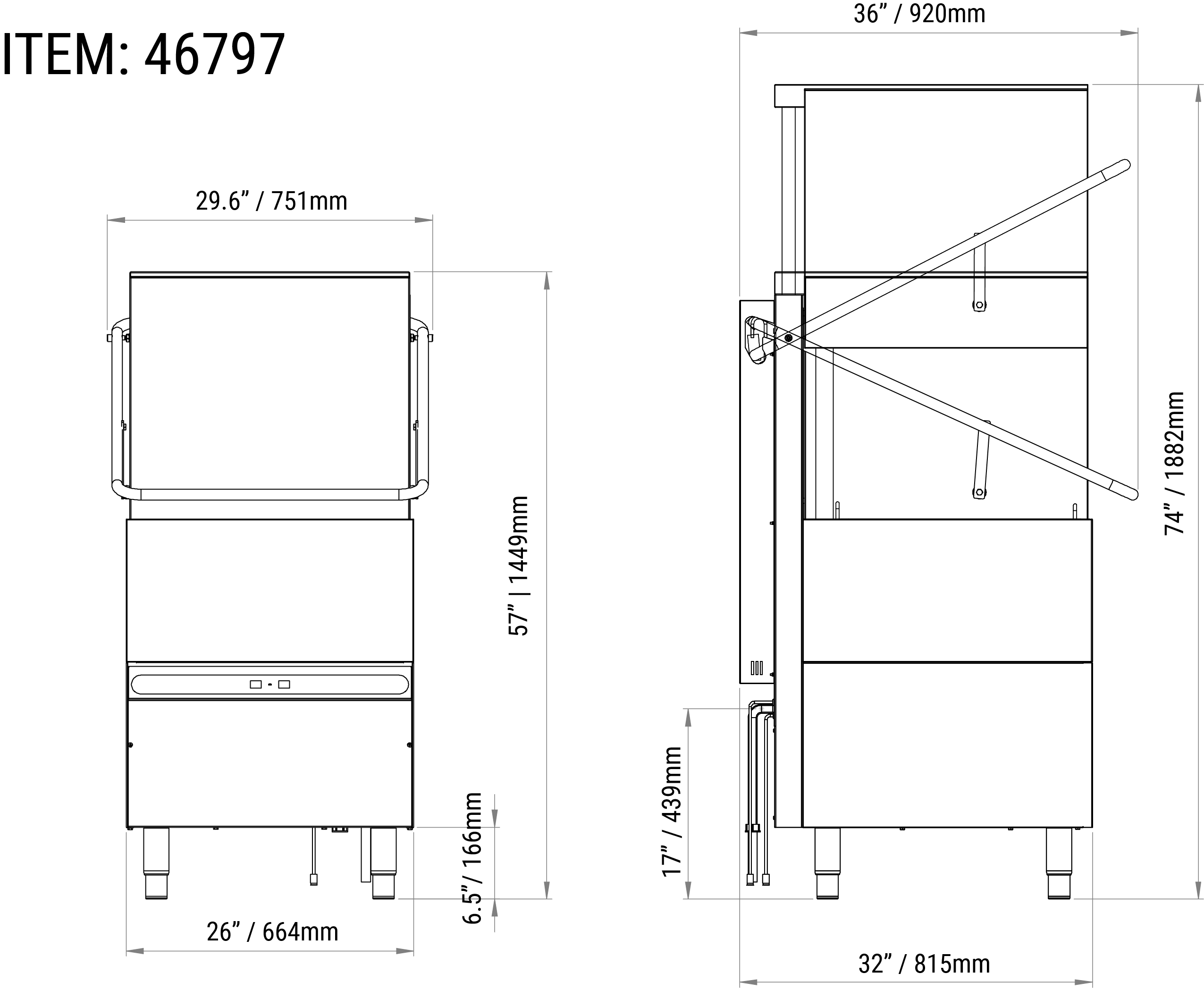 NET DIMENSIONS: 30″ x 36″ x 57″ / 751 x 920 x 1449 mm (74″ / 1882 mm open)
