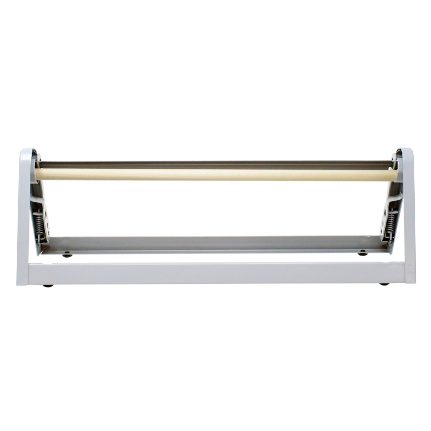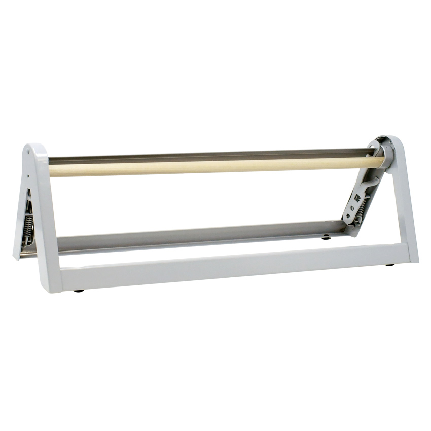 Roll changing is easy with dowel holders and knife arms that lock into open position. Mounts permanently on a wall, under a counter or on a countertop using the supplied rubber feet (mounting hardware not included). Holds up to 9″ diameter roll