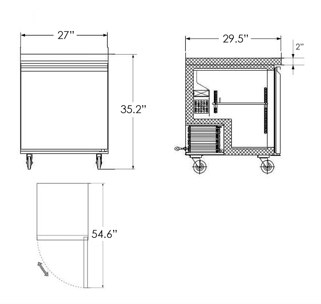 27″ Undercounter Refrigerator, 1 Door, Stainless Steel, 6.3 cu.ft. (117 L) Capacity – 115V, 1/6 HP