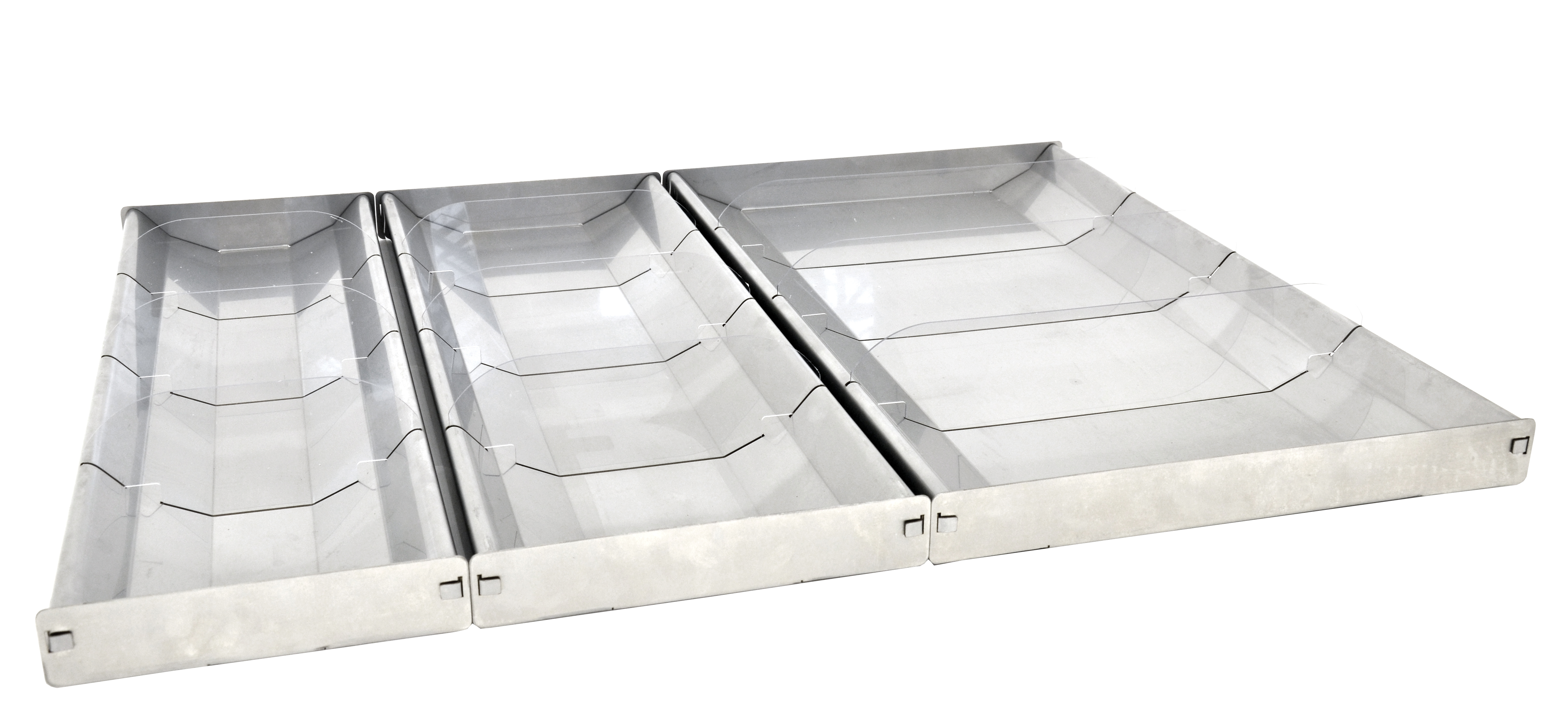 Be the first to rate 28.5″ x 6.75″ x 2″ Reversible Stainless Steel Tray with Clear Dividers