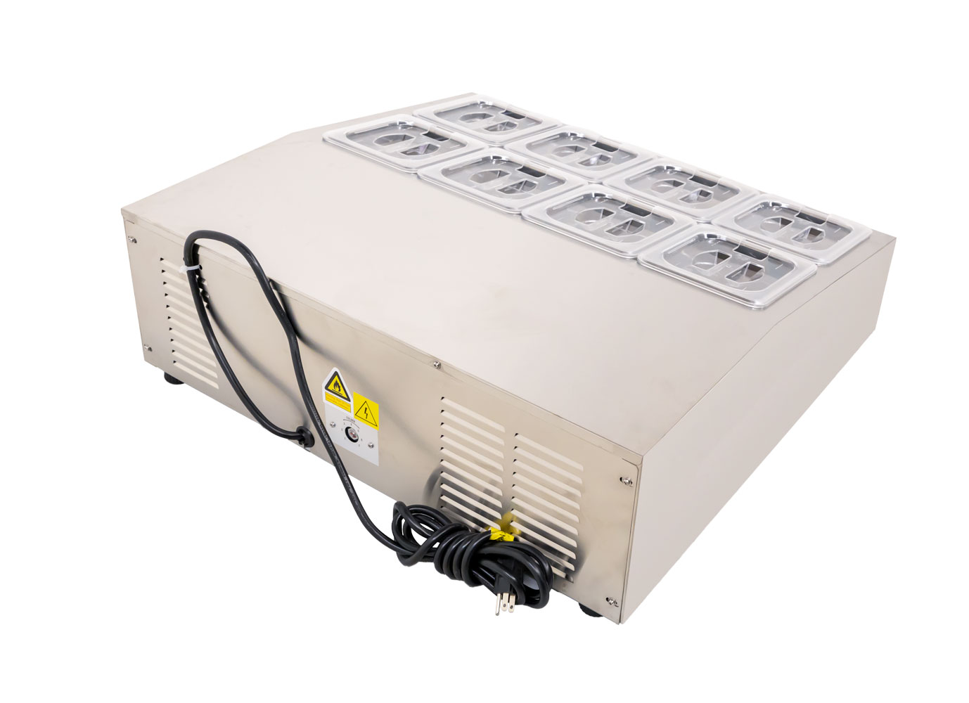 • Fits 8 x 1/6 GN food pans (4 X 6” and 4x 4” deep)