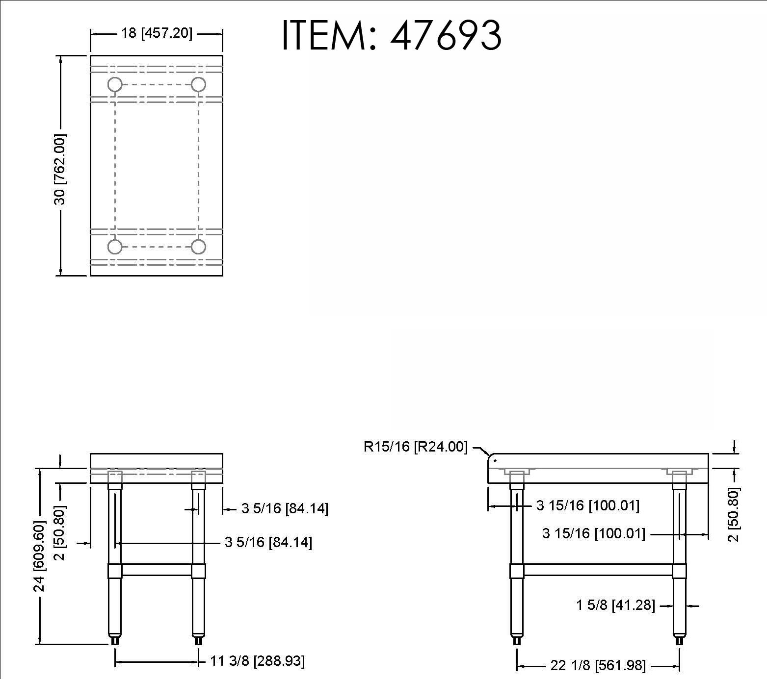 • 18-Gauge 430 Stainless Steel top shelf with 2″ turn up on left-rear-right sides