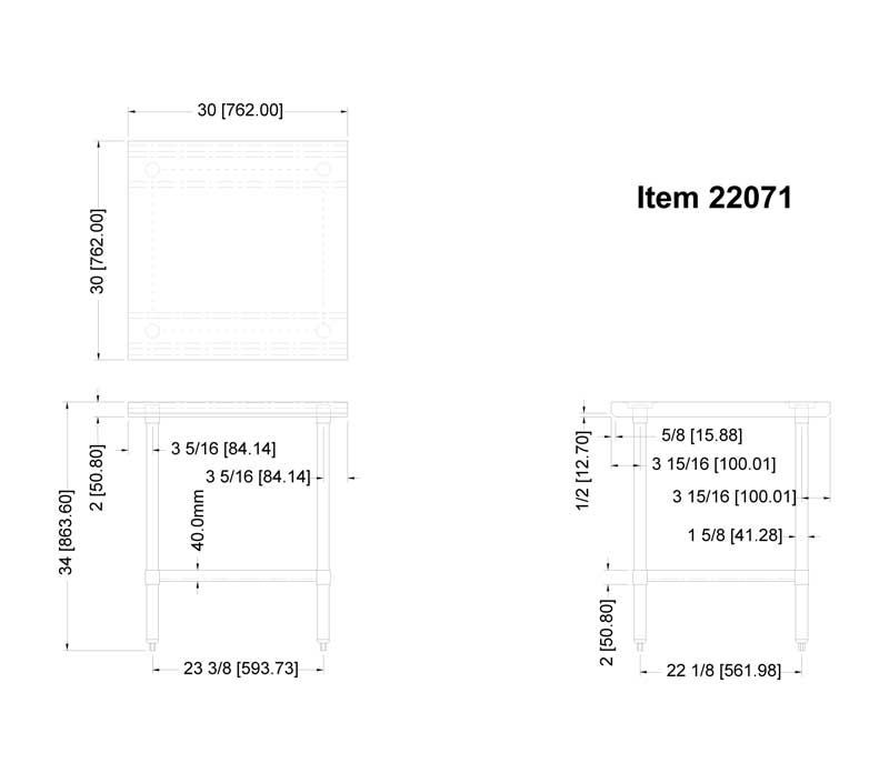 18 Gauge 430 Stainless Steel Support Channels secured via bolt and acorn style nut The Galvanized Under-shelf designed with welded V pipe leg supports Legs secured by single set-screw design Plastic Bullet Feet