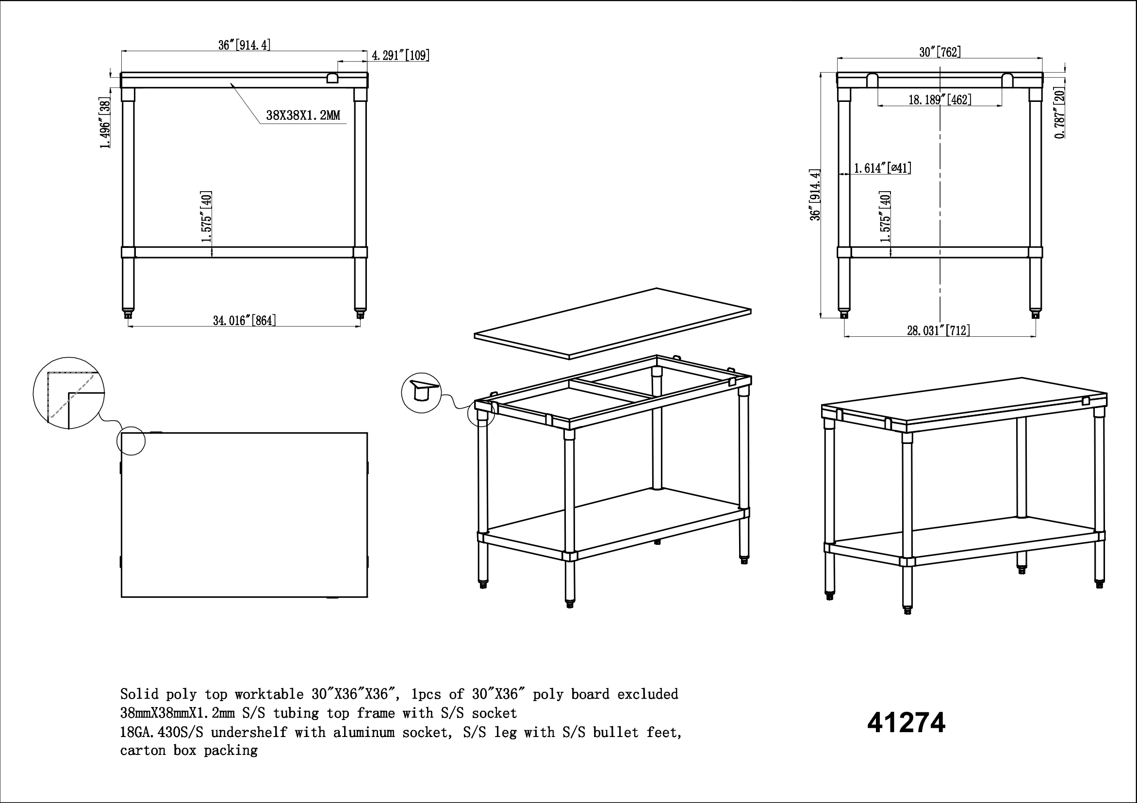 Made of stainless steel frame, these poly top tables are perfect for deli shops, sandwich shops, restaurants, and other commercial kitchen. The shelf can be used as a storage for ingredient bins, knives, and other kitchen tools or supplies that is needed while preparing and cooking. Poly cutting boards sold separately.