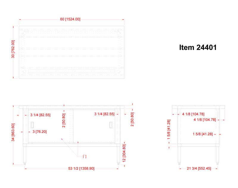 18 Gauge 304 Stainless Steel Enclosed cabinet with sliding doors Stainless Steel Bullet Feet NSF approved Shipped on Pallet