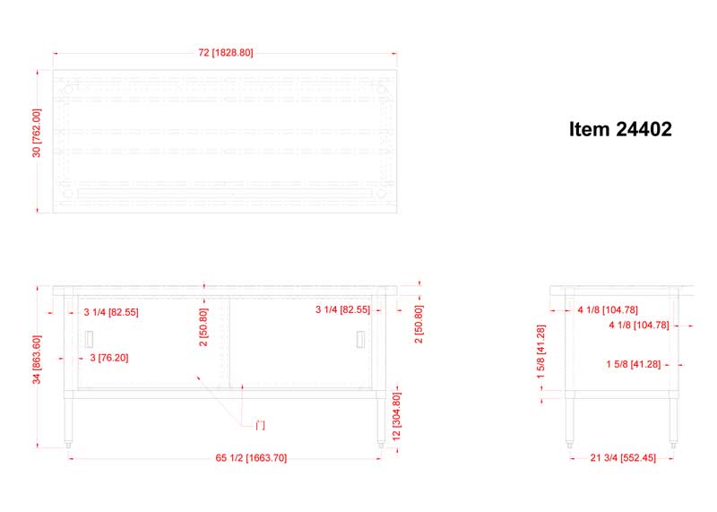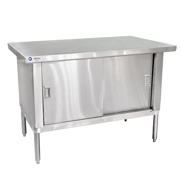 18 Gauge 304 Stainless Steel Enclosed cabinet with sliding doors Stainless Steel Bullet Feet NSF approved Shipped on Pallet