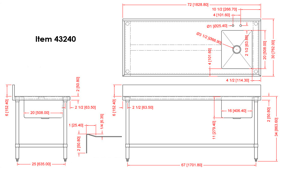 Be the first to rate 30″ x 72″ All Stainless Steel Table with Right Sink and 6″ Backsplash