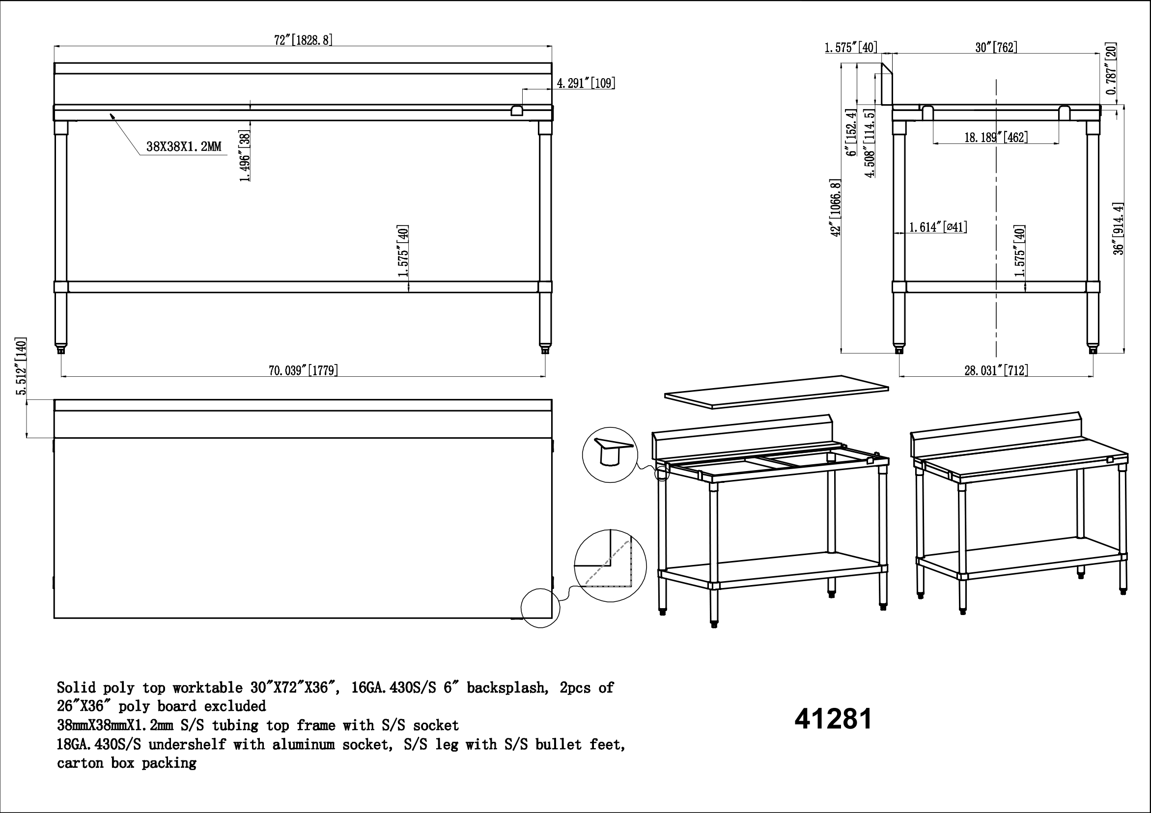 Made of stainless steel frame with 6" stainless steel backsplash, these poly top tables are convenient kitchen prep tables ideal for deli