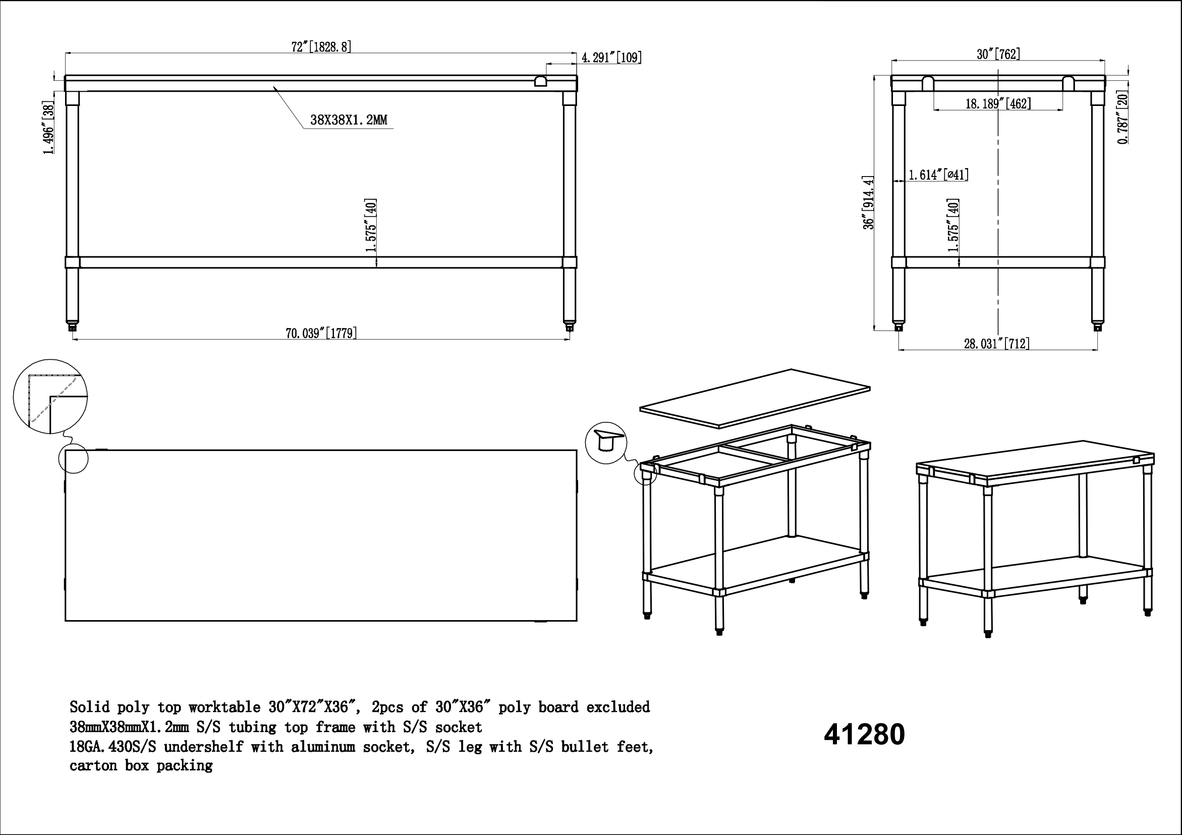 Made of stainless steel frame, these poly top tables are perfect for deli shops, sandwich shops, restaurants, and other commercial kitchen. The shelf can be used as a storage for ingredient bins, knives, and other kitchen tools or supplies that is needed while preparing and cooking. Poly cutting boards sold separately. Shipped on Pallet.