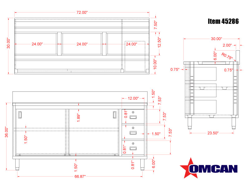 18-gauge 430 stainless steel hat channel, back, side, bottom and intermediate shelf