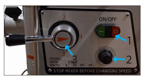 Boasting a powerful 2 Horsepower motor, Omcan's ETL certified 30-QT baking mixer with guard and timer has a 3-speed, gear-driven transmission making it easy to mix ingredients nice and easy."?This mixer has 3 speeds. It comes complete with 3 attachments, a stainless steel bowl, and a safety guard.