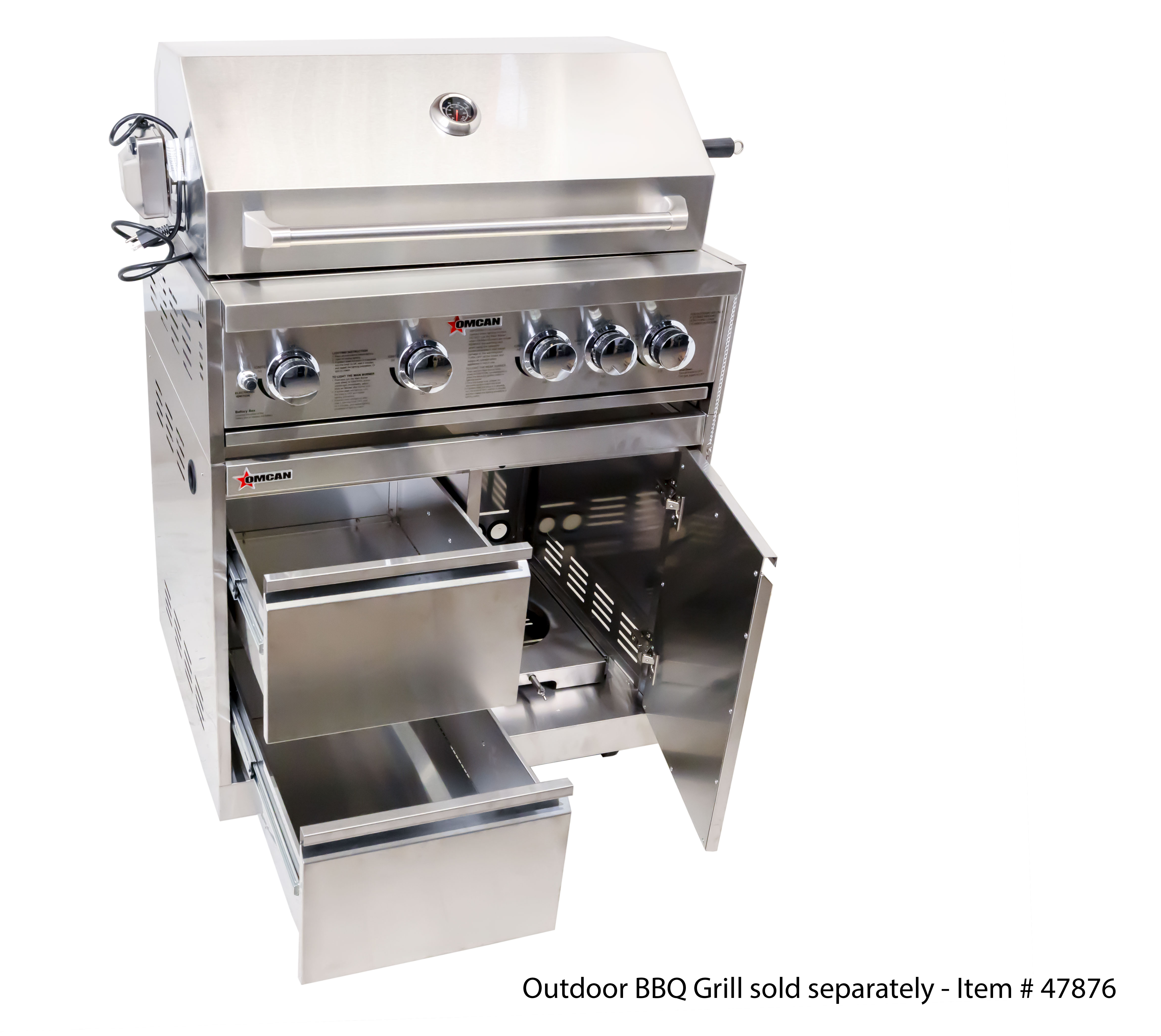 32″ Stainless Steel Cabinet Stand for #47876 with Gas Tank Cabinet and 2 Drawers with Soft Hinge Drawer Slide