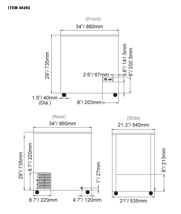 NET DIMENSIONS (DWH): 21.3” x 34” x 30.5”