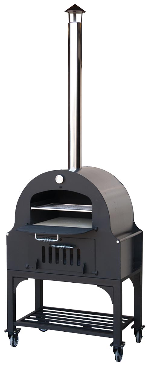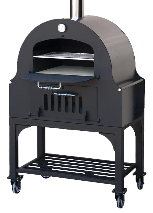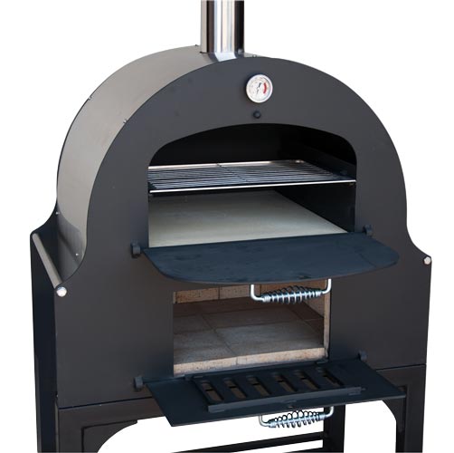 The unique vertical design with separate chambers for the fire and oven allowing wood flavor smoke to enter the oven chamber for that traditional wood fired flavor.