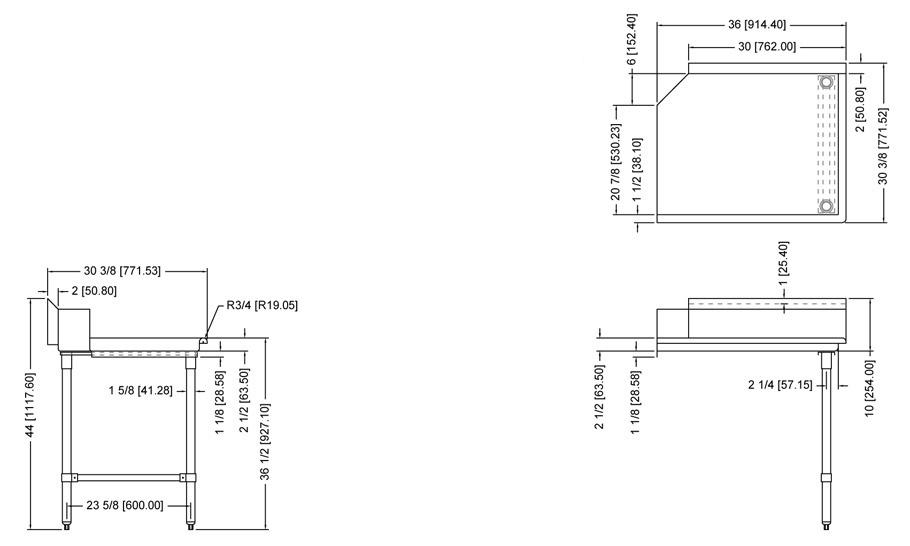 36-inch Stainless Steel Clean Dish Table – Right Side