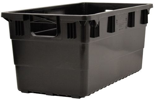 Box with open handles at the ends. Durable and sturdy, it is ideal for the fishing industry. Made of high-density polyethylene in Canada.