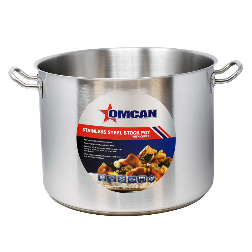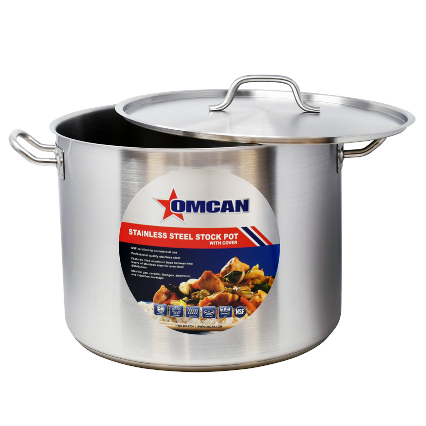 The body of the stainless steel stock pot is made of 20-guage stainless steel and its 3-ply bottom is made by sandwiching an aluminum sheet between two layers of stainless steel.