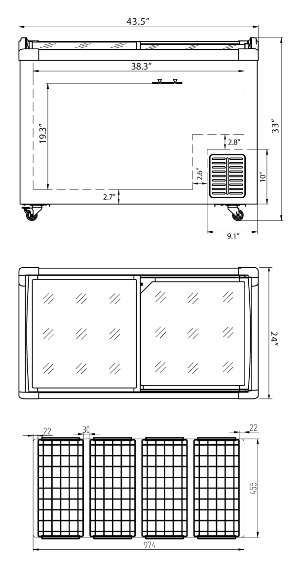 Be the first to rate 44″ Ice Cream Display Chest Freezer with Curved Glass Top, 6.7 cu.ft. Capacity – 110 V, 265 W