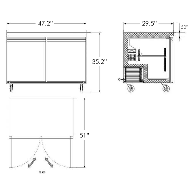 OVER-ALL DIMENSIONS (WDH): 47.2” x 29.5” x 35.2”