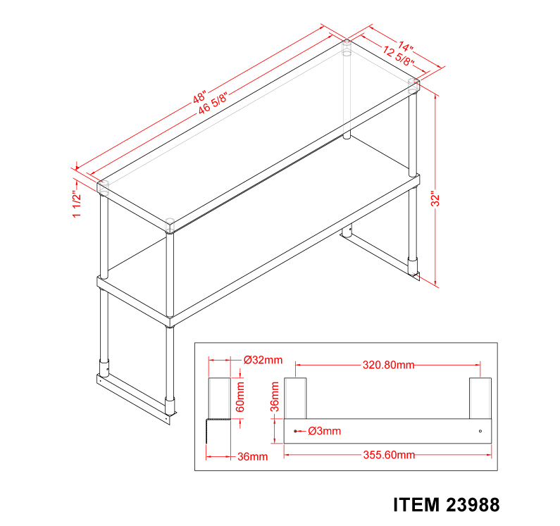 Be the first to rate 48-inch Stainless Steel Double Deck Overshelf