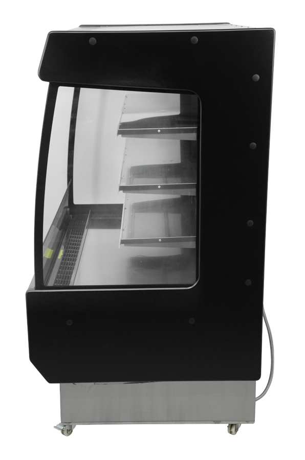 The Omcan 51-inch Grab-and-Go Open Refrigerated Merchandiser with 27.2 cu.ft capacity is perfect for showcasing your products in style. Powered by a robust 1HP compressor, it ensures efficient cooling performance while maintaining a rated current of 14.5A for energy efficiency. The eco-friendly R290 refrigerant guarantees eco-conscious refrigeration. Its temperature range of 2-10°C/ 35.6-50°F keeps your products fresh and enticing. Equipped with a 450W electrical heating element, it prevents condensation and maintains clear visibility through the brilliant internal LED illumination. The digital temperature controller and display allow precise settings, while the included night curtain enhances energy conservation. For added convenience, it comes with four castors, two with brakes, for easy mobility and stability. The ventilated cooling system and automatic defrost feature ensures optimal performance, while the four shelves offer ample space for product organization. Elevate your retail space with this advanced Grab-and-Go refrigerated merchandiser, ideal for enhancing product visibility and attracting customers.