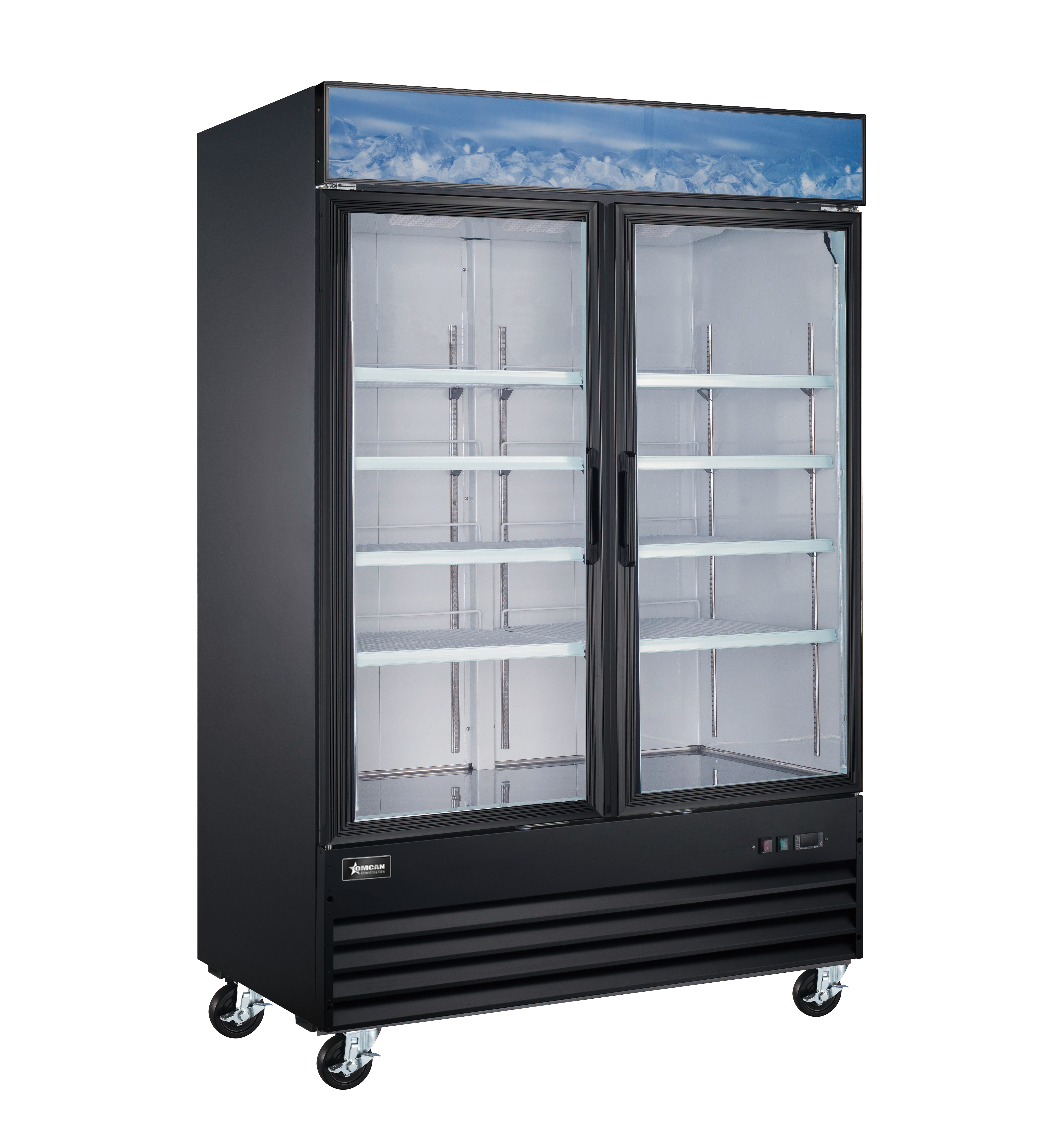 53” Black Display Refrigerator, 2 Swings Glass Doors, 45 cu. ft. (1270 L) Capacity – 120V, 1/4 HP