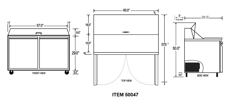 Be the first to rate 60″ Refrigerated Prep Table, 2 Doors, 15 cu.ft. Capacity