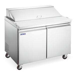 This unit has ample refrigerated storage underneath to keep food refills within reach, with a storage area of 56.4" x 19.8" x 20". Easily access the storage area even during busy service with two conveniently placed doors. The refrigerated storage includes 2 plastic-coated steel shelves of size 27.4" x 17.1" having a loading capacity of 40 kg/90 lbs each.