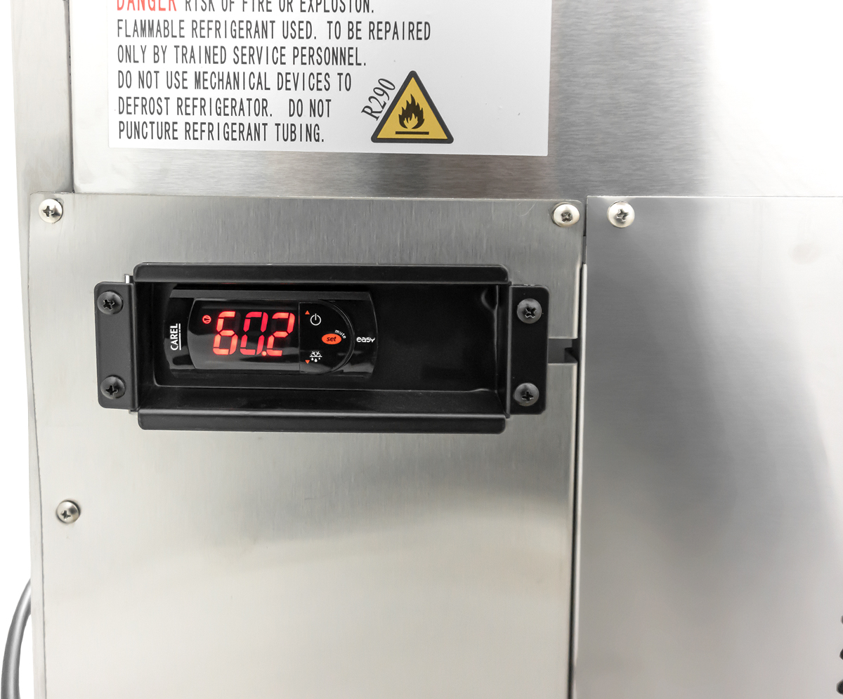 The unit has been designed for commercial use and has an extremely robust build. The exterior is made of 430 stainless steel and the interior is made of 201 stainless steel. It has cyclopentane insulation that helps maintain the unit at a proper temperature. It has R290 as a refrigerant which is an environment friendly coolant and is powered by a 534 W compressor which helps maintain temperature in the range of -0.6 to 0.6 °C.