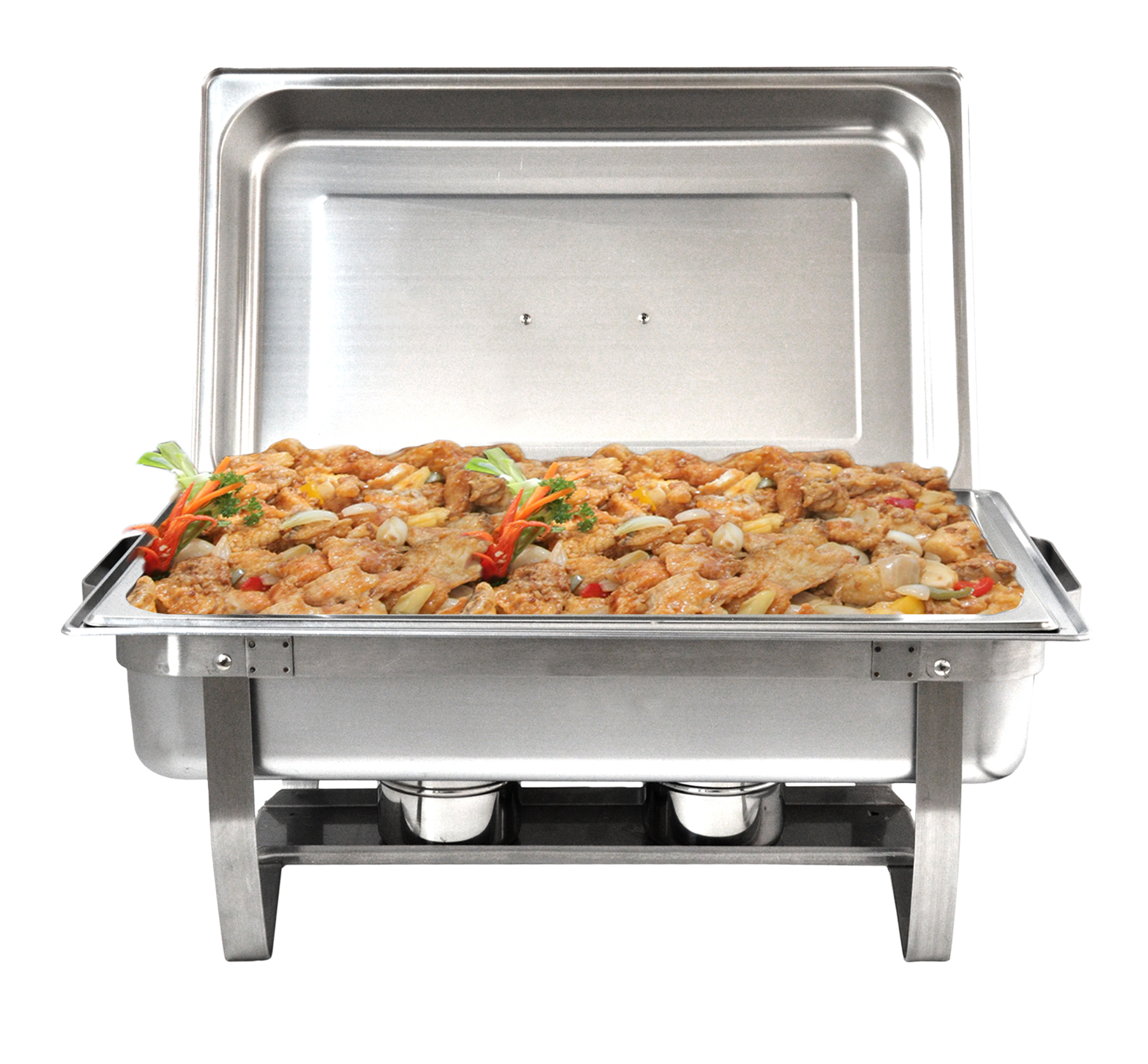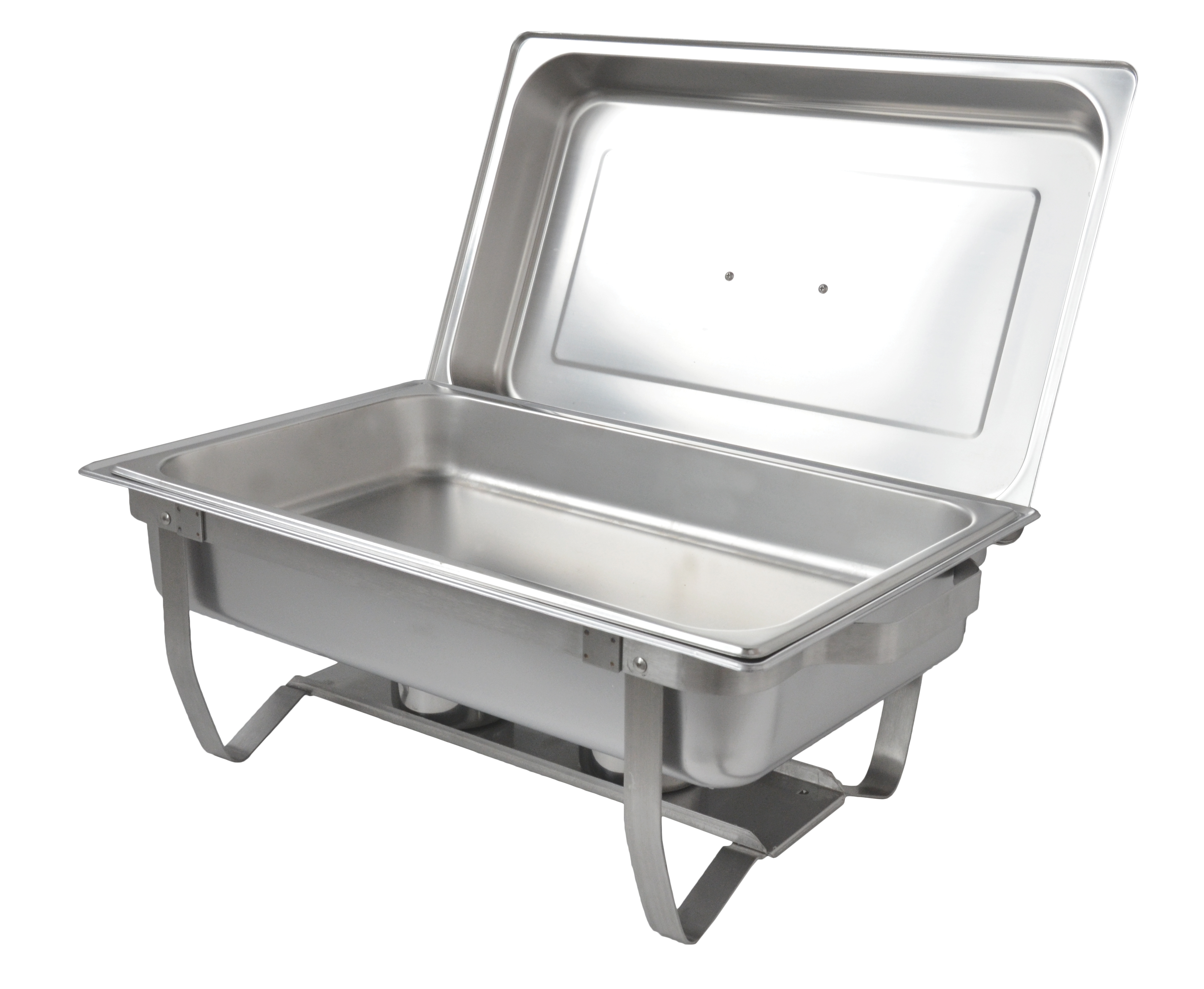 This stainless steel chafing dish is ideal for catering your next special event. Supplied with a steam pan, water pan, lid, and two fuel holders. (Fuel and plate not included).