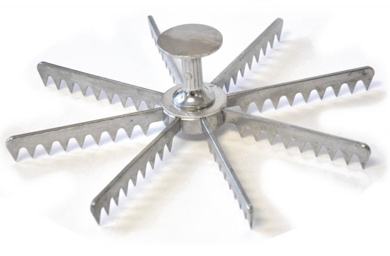 A neatly slice of cake is good enough to show professionalism of your restaurant. Our aluminum slice pie marker helps you to mark evenly cake cut. Ensures you to deliver same portion of cake and pie every time. It features 9-teeth each arm and a removable knob for easy cleaning and space-efficient storage.