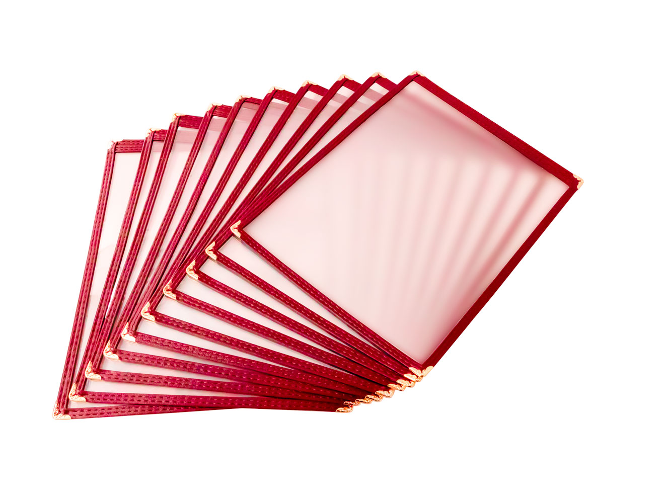The menu booklets feature clear vinyl panels and designed to allow you to replace printed menus. These booklets come with crimped metal reinforcements to ensure longevity.
