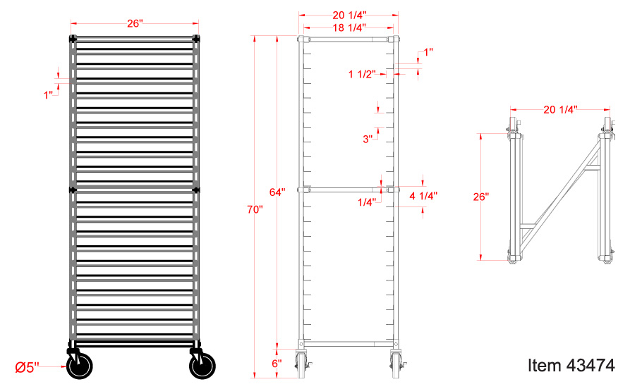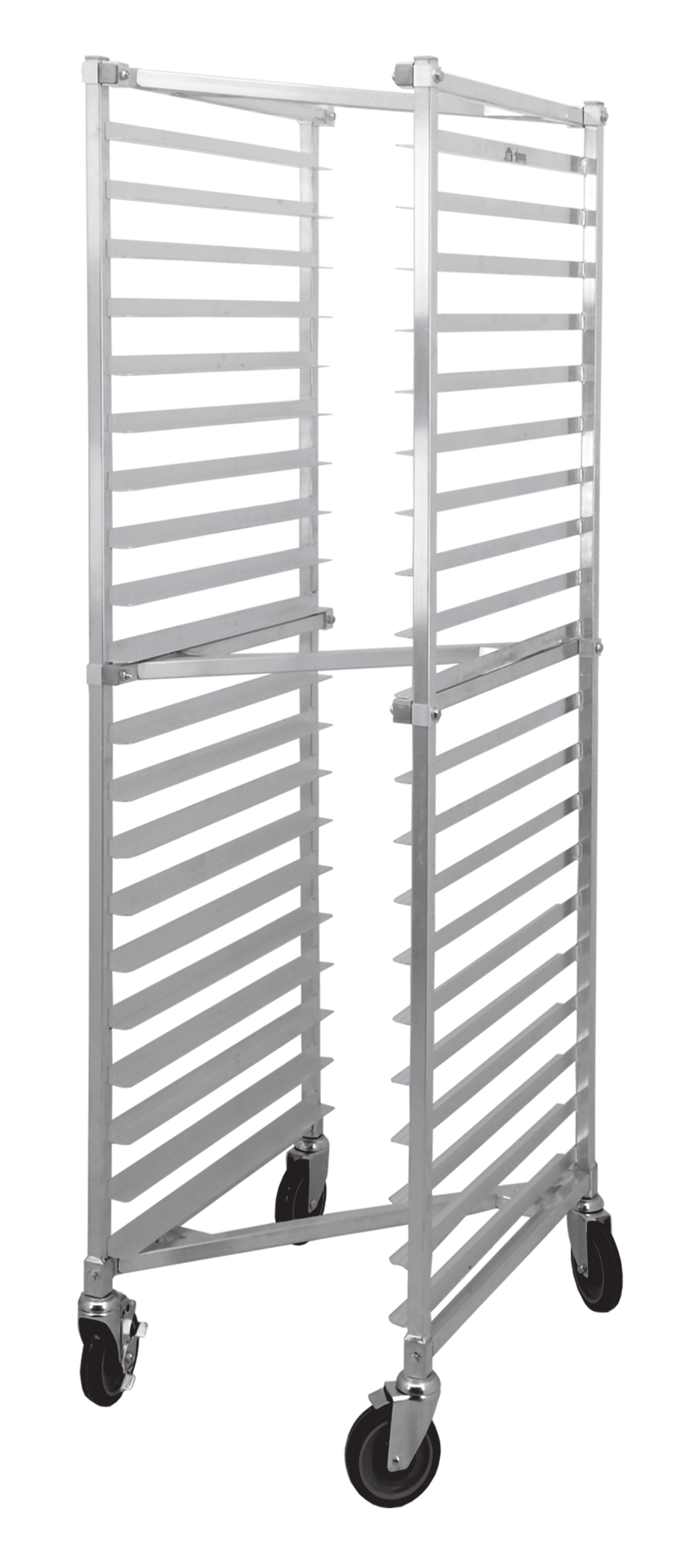 Aluminum Heavy Duty Knock Down Pan Racks with welded angle slides. Complete with 5" heavy-duty casters. Assembly required.
