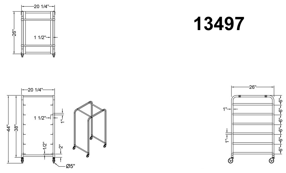 Aluminum Heavy Duty Knock Down Pan Racks with welded angle slides. Complete with 5" heavy-duty casters. Assembly required.