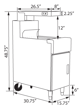 NET DIMENSIONS: 30.75″ x 15.75″ x 48.75″/ 781 x 400 x 1238 mm