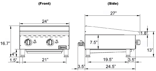 24″ Elite Countertop Radiant Gas Charbroiler 2 Burners, 80,000 BTU