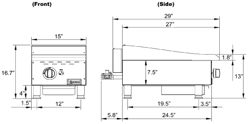 15″ Countertop 1 Burner Stainless Steel Gas Griddle with Manual Control, Natural Gas / Propane – 30,000 BTU